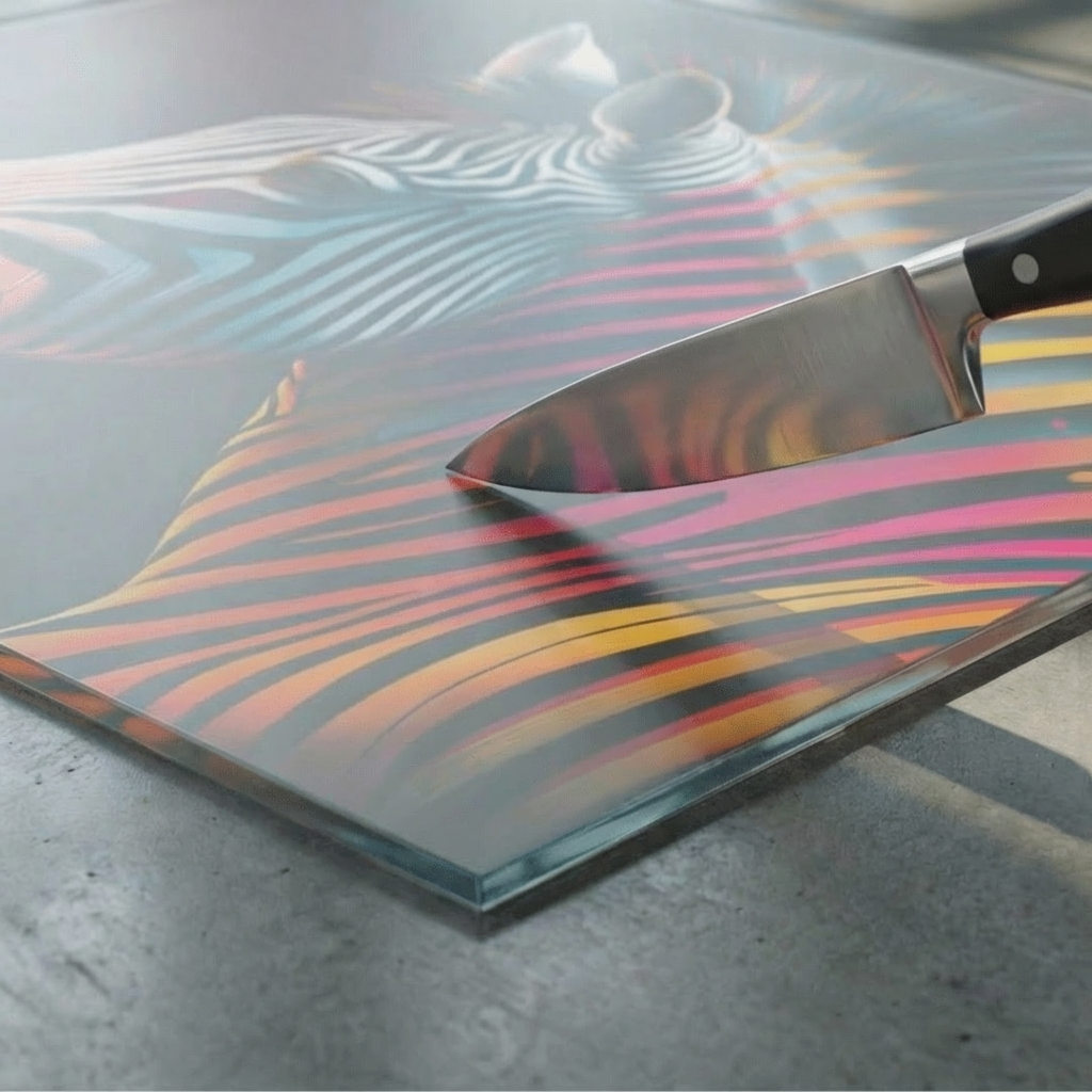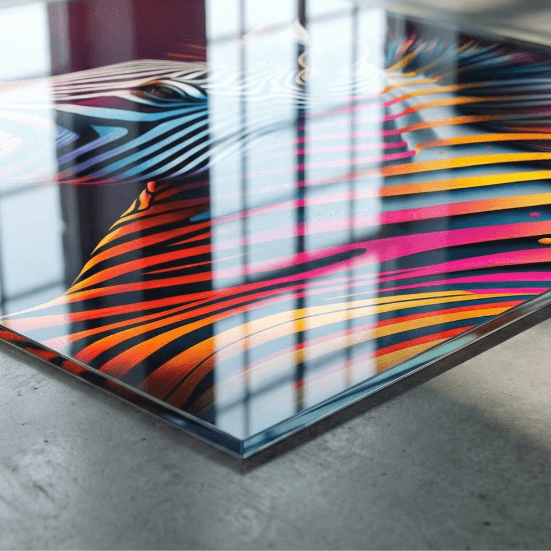 Dieses Produkt besteht aus 6 mm Einscheiben-Sicherheitsglas (ESG) in der besonders klaren Optiwhite-Qualität. Dadurch kommen Farben sehr lebendig und originalgetreu zur Geltung – ideal für detailreiche Motive und moderne Gestaltung.